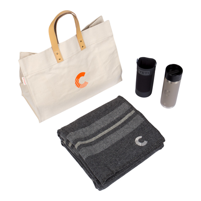 Stay warm as you cheer on your team. This tailgating bundle features a Faribault Woolen Mill Co. throw blanket, Yeti tumbler, Yeti sling and tote bag. Complete the look and add on our Patagonia fleece and Cloudera baseball cap.